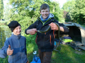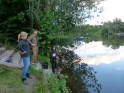 Zum Angeln selber: Die ganze Woche vor dem Nachtangeln war perfektes Wetter für das Angeln im Emssee. Wir als Betreuer waren überzeugt, dass richtig gut gefangen wird. Dummerweise drehte abends der Wind auf Ost und uns beschlich ein ungutes Gefühl. Und wir sollten damit leider Recht behalten. Es wurde schlecht gefangen, wenn überhaupt. Unsere Gesamtausbeute bei acht Junganglern und drei Betreuern waren gerade mal zwei Hechte (57cm und 62cm) und ein Aal (61cm). Immerhin ein Aal! Dank Vincent konnten wir dem Namen der Veranstaltung wenigstens gerecht werden. Trotz der Beißflaute hatten wir alle wieder viel Spaß zusammen. Nachts am See bleibt halt doch immer etwas besonderes. Zum Abschluss konnten wir noch unter allen Teilnehmern eine gespendete Abhakmatte verlosen. Danke dafür an Michael!