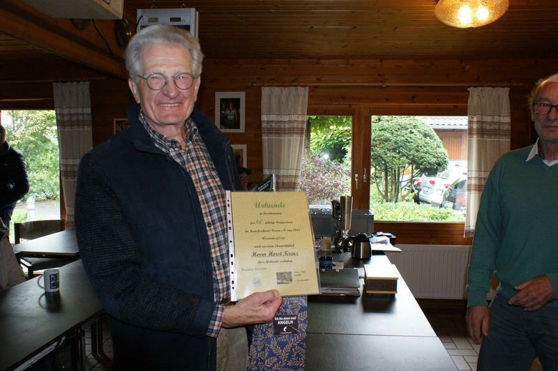 Im Zuge der Ehrungen des Königs und Jugendkönigs, sowie der Auszeichnung der schwersten Fried- und Raubfische, wurden unsere diesjährigen Jubilare mit den entsprechenden Vereinsnadeln ausgezeichnet und erhielten darüber hinaus ein kleines Geschenk als Dankeschön für ihre Vereinstreue. Herausragend zu erwähnen hierbei sicherlich Dieter Hellmann und Horst Kreuz für 60 Jahre und Käthe Lütke Beckmann und Franz-Josef Mersmann für 50 Jahre Mitgliedschaft!