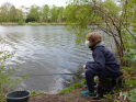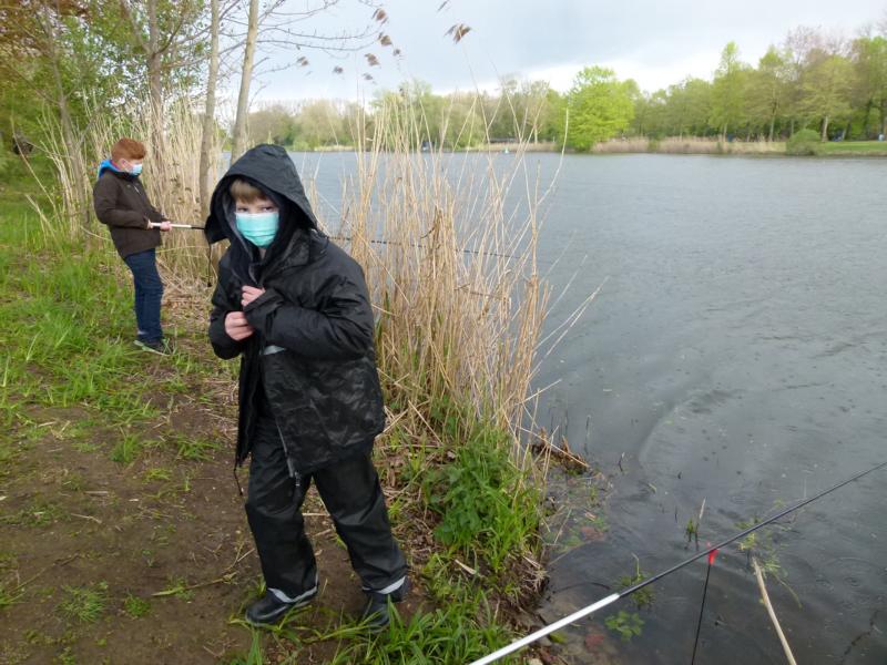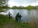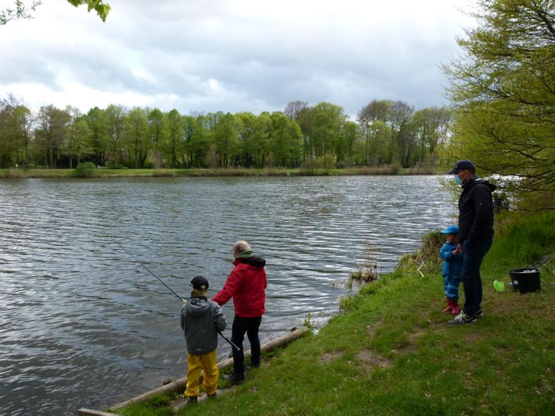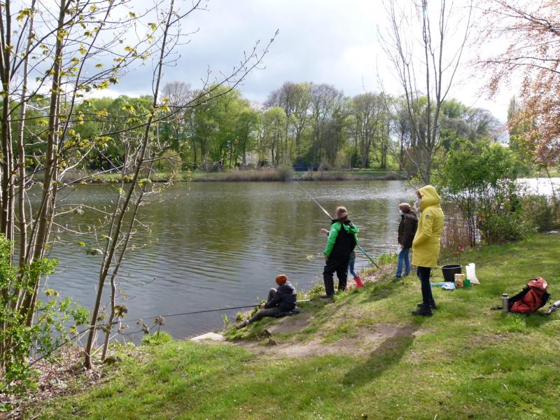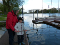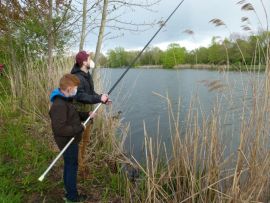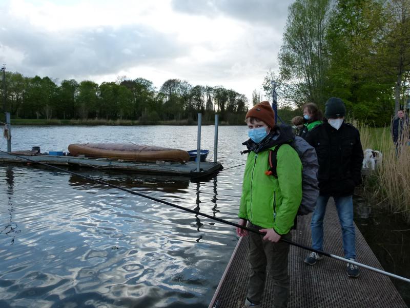 Um 17 Uhr durften wir 14 angehende Nachwuchsangler begrüßen. Nach den üblichen Erläuterungen ging es dann endlich voller Vorfreude an die Angelstellen. Die Angeln waren schnell montiert, etwas Futter angerührt und schon landeten die ersten Montagen im Wasser. Jetzt hieß es warten und die Betreuer mit Fragen löchern. Es kann schon spannend sein, wenn man den Schwimmer konzentriert beobachtet, mit der Hoffnung, dass er irgendwann abtaucht. Jede Sekunde könnte es soweit sein. Und dann fängt man womöglich seinen ersten Fisch. Wer dabei seine unmittelbare Umgebung nicht ganz ausgeblendet hatte, durfte die ersten Entenküken, jagende Haubentaucher und eine immer grüner werdende Natur bestaunen. Soweit hätte es eigentlich nicht besser sein können. Aber was war mit den Fischen?