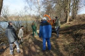 Eine weitere Gruppe von Vereinsmitgliedern hat das Schnittgut am Gröblinger See gehäckselt und verteilt.