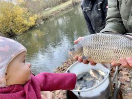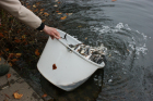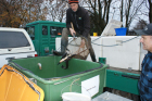 Da wir genügend Helfer hatten, kescherte der Fischzüchter die Fische zügig in die Bottiche.