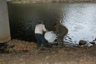 Zuerst wurde der Transportbehälter mit Fischen befüllt, um damit den Besatz im Axtbach durchzuführen. Zeitgleich kamen einige Bottiche mit Fischen in die Ems und der Rest wurde mit dem LKW an verschiedene Stellen unserer Vereinsgewässer gefahren.