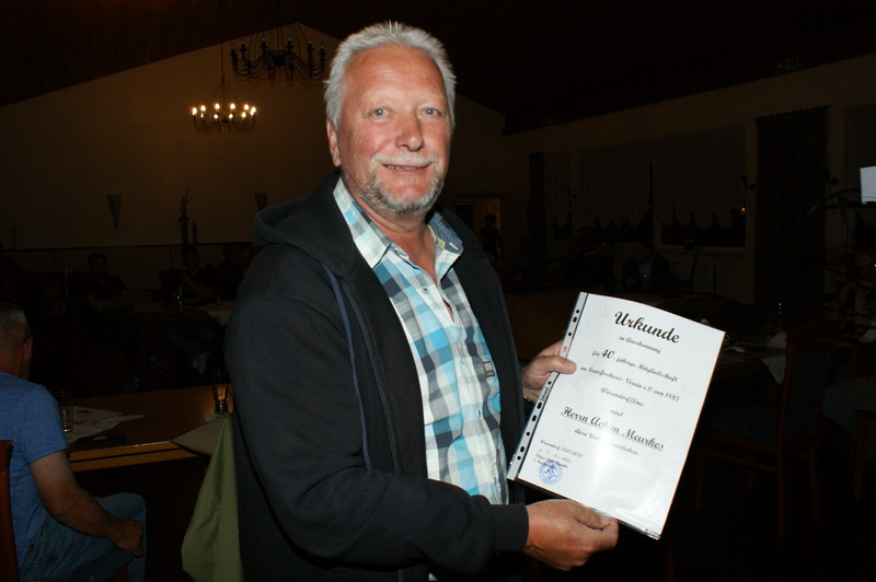 Nachdem alle weiteren Tagesordnungspunkte wie die Ergänzungswahlen des Ehrenrates, die Berichte der Gewässerwarte, der Etatvorschlag usw. abgearbeitet wurden, folgte zu guter Letzt noch die Ehrung der langjährigen Vereinsmitglieder. Besonders zu erwähnen gilt hier sicherlich Vereinskamerad Ernst Seling mit 60 zig Jahren Vereinsmitgliedschaft, sowie Horst Possmeier und Karl Thomas mit jeweils 50 zig Jahren Vereinszugehörigkeit.