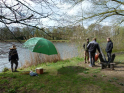 Wer sich jetzt fragt, warum ich die ganze Zeit über das tolle Aprilwetter schreibe und nicht über die spannende Zeit am Wasser oder die vielen Fische, die gefangen wurden, den muss ich leider enttäuschen. Das Angeln war aufgrund der äußeren Umstände eher anstrengend und es wurde leider kein Fisch gefangen. Lediglich eine alte Plastiktüte. Auf die Frage "Warum angeln wir eigentlich immer da, wo es keine Fische gibt?" hatte ich irgendwie auch keine gute Antwort parat. Aber wir geloben Besserung und versuchen in Zukunft bessere Angelstellen zu finden. Trotzdem haben wir uns gefreut, dass alle acht Jungangler bis zum Schluss durchgehalten haben. Als kleine Belohnung gab es, neben der Erfahrung, dass es im Frühjahr schwierig sein kann einen Fisch zu fangen, eine Verlosung von gespendeten Angelsachen. So konnten die Jungs wieder etwas lächeln.