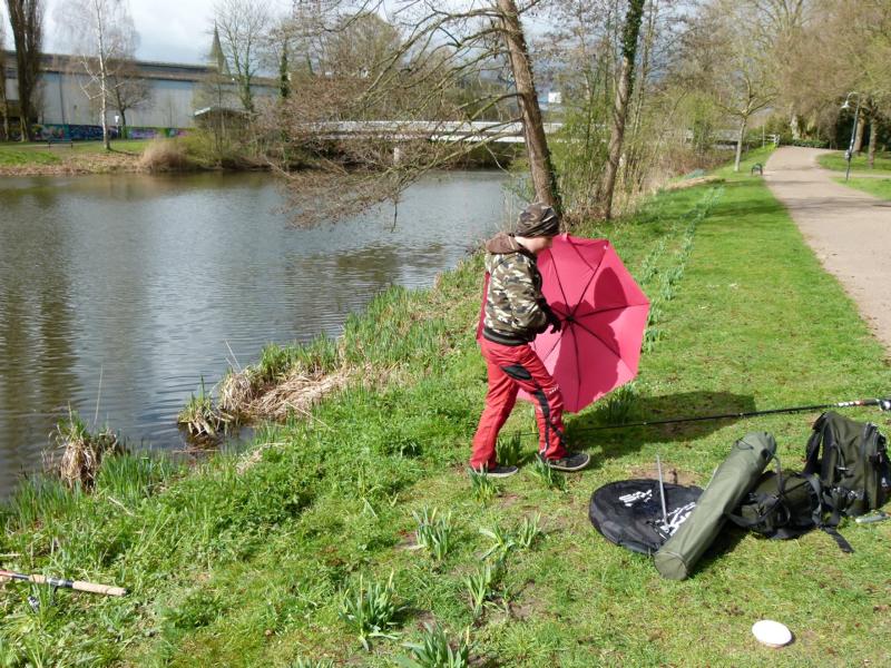Das Anangeln der Jugend fand wie in den letzten Jahren am Emssee in Warendorf statt. In diesem Jahr hatten wir die Angelzeit allerdings um eine Stunde nach hinten verschoben. Also von 9:00 – 12:00 Uhr anstatt von 8:00 – 11:00 Uhr. Wir erhofften uns dadurch ein etwas besseres Fangergebnis, da es in den frühen Morgenstunden um diese Jahreszeit meist noch etwas kälter ist. Und was soll ich sagen, zumindest mit der Kälte hatten wir recht. Nur dass diese im Laufe des Tages einfach nicht verschwinden wollte. Der starke Wind und die immer wieder einsetzenden Regenschauer zogen die Temperaturen zusätzlich nach unten. Aber es gab auch Lichtblicke. Wenn die Sonne für ein paar Minuten da war, sah die Welt schon viel freundlicher aus.
