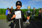 Die Karpfen waren da etwas dickfälliger. Schon nach kurzer Zeit gab es den ersten heftigen Biss. Leider ist der Haken im Kampf aufgebogen und damit hatte der Karpfen gewonnen. Eigentlich spricht man ja von einem Drill, aber bei einem Kräftemessen zwischen Jungangler und Karpfen passt Kampf für mein Empfinden irgendwie besser. Es sollte nicht lange dauern, bis es zu einer neuen Chance kam. Diesmal schwamm der Karpfen so schnell am verdutzten Jungangler vorbei, dass er wohl dachte, er hätte nichts mehr am Haken. Daraufhin drehte er die Bremse zu um einzuholen. Dann ging leider alles sehr schnell. Die Schnur spannte sich, die Rute wurde krumm gezogen und die Schnur konnte dem Druck nicht standhalten. Zwei zu Null für die Fische! Aber aller guten Dinge sind ja bekanntlich drei. Wieder ein rasanter Biss und wieder wollte es der Fisch seinem Gegner nicht leicht machen. Er flüchtete direkt in eine Buschreihe, die im Wasser hing. Nichts ging mehr, er hing irgendwo im Busch fest. Schnell holte Jens seine Wathose und begab sich ins Wasser, um den Fisch zu bergen. Und tatsächlich hing er noch am Haken und Jens konnte ihn keschern. Ein Graskarpfen! Mehrmals versuchte er aus dem Kescher zu springen. Gut, dass Jens als erfahrener Karpfenangler wusste was der Fisch versuchen würde. Letztlich übergab er ihn dann seinem überglücklichen Fänger.