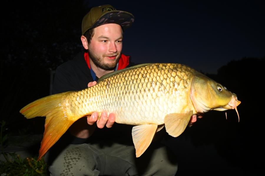 Nur eine Stunde später hallte dann ein Bissanzeiger durch die Nacht. Es piepte und piepte und piepte. Alles rufen: "Henry, du hast einen Biss!" half nichts. Mittlerweile rannten fast alle um den Teich. Roman war zuerst an der Angel und schlug an. Henry brauchte noch etwas um zu verstehen, was da grade passierte. Als Roman ihm die krumme Rute in die Hände drückte war er dann sofort hellwach. Und kurze Zeit später konnte er sich über einen Schuppenkarpfen freuen. Viel schöner kann ein Traum wohl nicht enden. Und knappe zwei Stunden später wiederholte sich der Vorgang. Nur das Henry jetzt etwas eher an der Angel war und den zweitschwersten Karpfen aus dem See fing. Petri Heil!