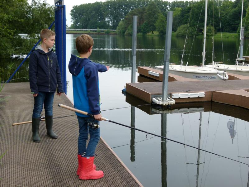 Es war der erste Mittwoch im Juni und es stand das dritte Schnupperangeln in diesem Jahr an. Von 17 Uhr bis 19 Uhr durften Kinder bzw. Jugendliche ohne Fischereischein den Emssee unsicher machen. Natürlich unter der Aufsicht von erfahrenen Anglern. Übrigens dürfen die Eltern oder Erziehungsberechtigten auch gerne mitangeln, soweit Interesse besteht. Denn seit ein paar Jahren dürfen wir auch Erwachsene "betreuen".