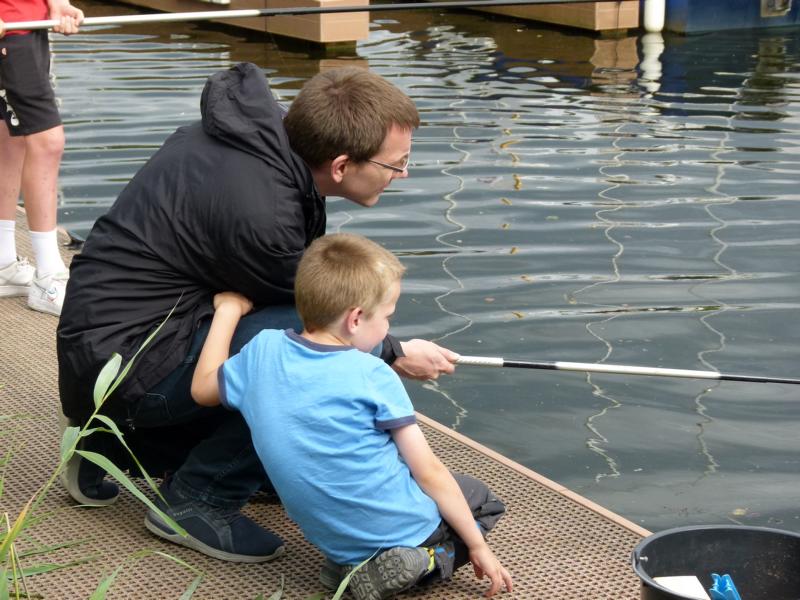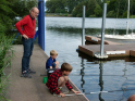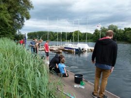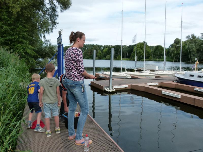 Aufgrund der Sommerferien waren wir uns sicher, dass sich nicht allzu viele Jungangler ans Wasser verirren würden. Viele von ihnen genießen warscheinlich grade ihren Urlaub. Das die Runde dann doch so klein ausfiel überraschte uns ein wenig. Immerhin konnten wir vier Kids und zeitweise drei Eltern fürs Angeln begeistern.