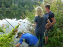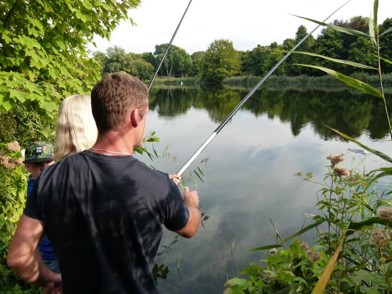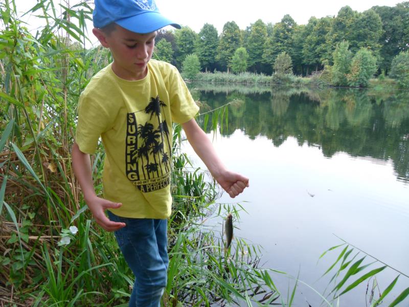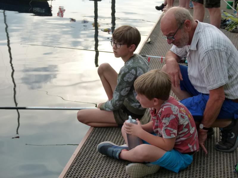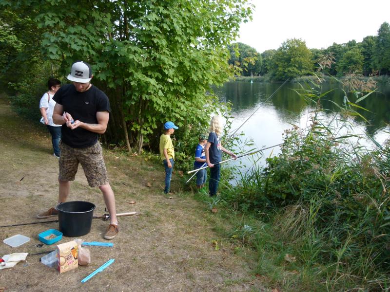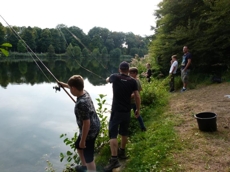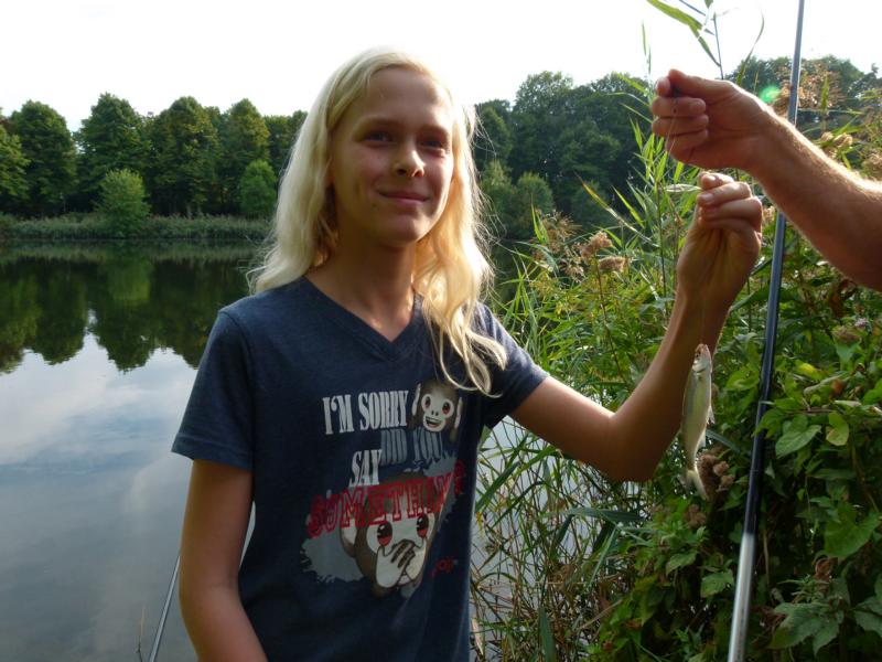 Wo wir gerade beim Angeln sind. Viel schöner hätte wir die Schnupperangelsaison nicht beenden können. Das Wetter war perfekt und die Teilnahme einfach super. 28 Kinder bzw. Jugendliche und die Eltern hatte ich nicht mal mitgezählt. Das waren zwei schöne aber auch anstrengende Stunden für unsere Betreuer. Bei vier Kindern pro Angelstelle kann man schon mal etwas ins Schwitzen kommen. Was die Fische angeht, hätten ruhig etwas mehr beißen können. Aber die Meisten konnten zumindest ein paar Fische fangen. Vorwiegend Rotaugen aber auch Ukeleien und ein paar Barsche. Und über einen hart erarbeiteten Fisch freut man sich einfach noch etwas mehr. Der Emssee war wie beim letzten Mal glasklar, nur dass jetzt deutlich mehr Wasserpflanzen zu sehen waren. Wie in einem riesigen Aquarium konnten wir kleine Rotaugen und einige Barsche beobachten. Einfach spannend. Für klein und groß!