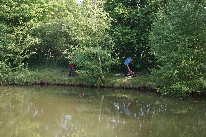Für die Schulung hatte uns unser Gewässerwart Dirk glücklicherweise seinen kleinen Privatteich zur Verfügung gestellt und neben Jens auch bei der Schulung geholfen.