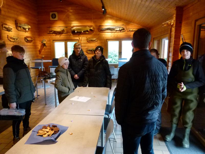 Um dreizehn Uhr durften wir zehn Jugendliche begrüßen. Auf drängen der Jungs hielten wir uns nicht lange mit der Begrüßung auf. Einige wären am Liebsten sofort ans Wasser gelaufen. Trotzdem mussten die Spielregeln kurz geklärt werden. Für das Angeln waren nur Kunstköder erlaubt, auch für alle mit rosa Schein. Schonmaße und Schongebiete sowie die Fangbegrenzung mussten natürlich eingehalten werden. Und um 16 Uhr sollten alle wieder zurück im Vereinsheim sein. Wenn es geht pünktlich! Somit hätten wir noch eine Stunde für den gemütlichen Teil.