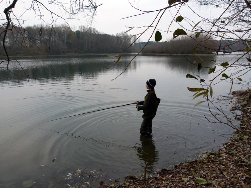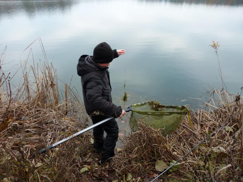 Schnell hatten sich die jungen Raubfischangler um den See verteilt. Genauso schnell kam die erste Erkenntnis. Beim Spinnangeln bekommt man kalte Finger. Zumindest, wenn das Wetter passt. Aber die Vorfreude auf einen Hecht war größer. Und so haben alle bis auf die letzte Minute geangelt. Leider wurde ihr Einsatz nur mit Kraut und der zweiten Erkenntnis, dass man einen Raubfisch nicht mal eben so fängt, belohnt.