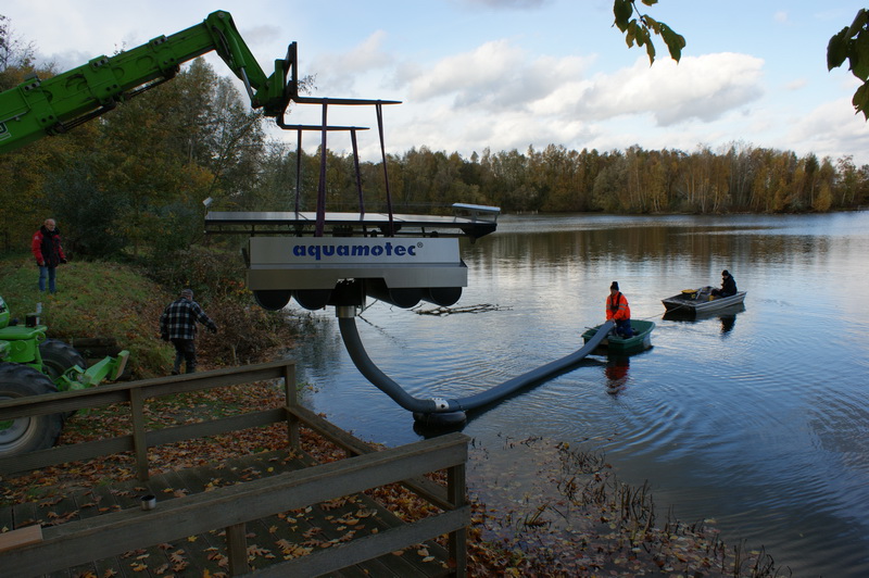 Bei dem Einsatz der technischen Geräte, vom Typ „Aquamotec", die auf dem See verankert werden, handelt es sich um schwimmende Pontos, die solarbetrieben (emmisionsfrei) und somit ohne Versorgungsleitungen (ohne Risiken durch Strom) betrieben und voraussichtlich gegen Weihnachten ihren Betrieb aufnehmen werden. Wissenschaftliche Untersuchungen zur Wasserqualität und zum Fischbestand sind vorgelagert. Wir halten den Null-Zustand fest und begleiten die Entwicklung dann fünf Jahre lang.