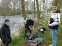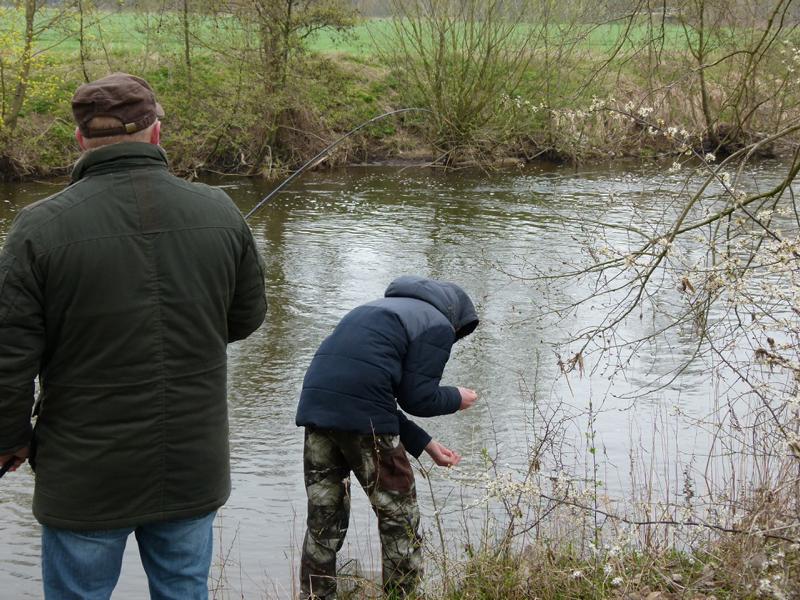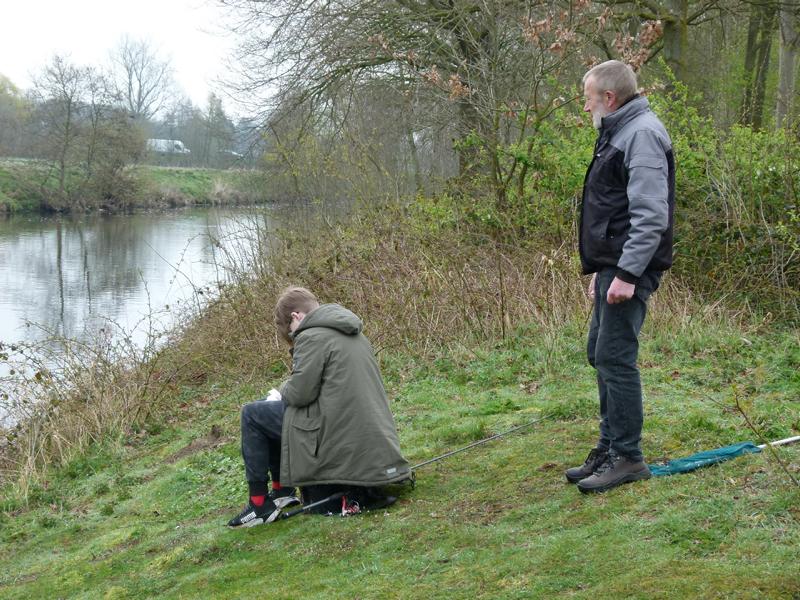 Unterstützt wurde ich von Willi, Roman und meinen Hund Diego. Wir unterhielten uns zwischenzeitlich über unsere Jugend. Was ist denn mit den Jungs los? Drei Kescher vergessen, zwei Eimer fehlten, drei ohne Maden, einer ohne Angel und über kleine Haken sprechen wir erst gar nicht. Stippfutter? Wofür? Waren wir früher auch so vergesslich? Oder hatten wir womöglich einfach mehr Bock zu angeln? Wahrscheinlich waren das einfach nur Anfangsschwierigkeiten. Ist ja auch das erste Vereinsangeln im Jahr.