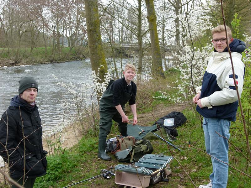 In diesem Jahr fand das Anangeln der Jugend in der Ems am Vohrener Stau statt. Da der Wasserstand oberhalb recht flach war, entschieden wir uns unterhalb zu fischen. Um acht Uhr durften wir zehn Jungangler begrüßen. Nachdem die Spielregeln geklärt waren, ging es für die Jungs direkt ans Wasser. Wer fertig war mit Aufbauen, durfte mit dem Angeln beginnen.