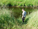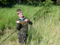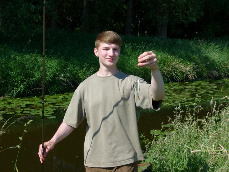 Für das Königsangeln der Jugend hatten wir uns in diesem Jahr den Axtbach ausgesucht. Genauer gesagt die Strecke zwischen Beelen und Warendorf vor der Eisenbahnbrücke. Es war gar nicht mal so einfach die Plätze abzustecken. Neben dem hohen Gras waren es vor allem die vielen Seerosen, die uns die Wahl der Stellen erschwerte. Grundsätzlich versuchen wir natürlich immer Bereiche zu wählen, wo man gut angeln kann und möglichst viele Fische fängt. Hier am Axtbach musste zusätzlich auch die Möglichkeit bestehen, die Fische zwischen dem ganzen Grün zu landen. Und damit blieben nicht mehr viele Stellen übrig. Wir waren ausnahmsweise mal froh, dass sich nur zehn Jungangler für den Titel König 2023 aufstellen ließen. Die ersten Fische konnten dann relativ schnell gefangen werden und somit war klar, dass es einen König geben wird. Die Frage war nur: Wer wird das Rennen machen? Es wurden vor allem kleinere Fische gefangen. Rotaugen, Ukeleien, Gründlinge, Döbel und ein Barsch. Wo sich die größeren Fische versteckt hielten, hätten wir auch gerne gewusst. Wahrscheinlich in den Seerosen. Zumindest konnten wir da zwei Karpfen beobachten, die aber scheinbar mit dem Laichen beschäftigt waren.