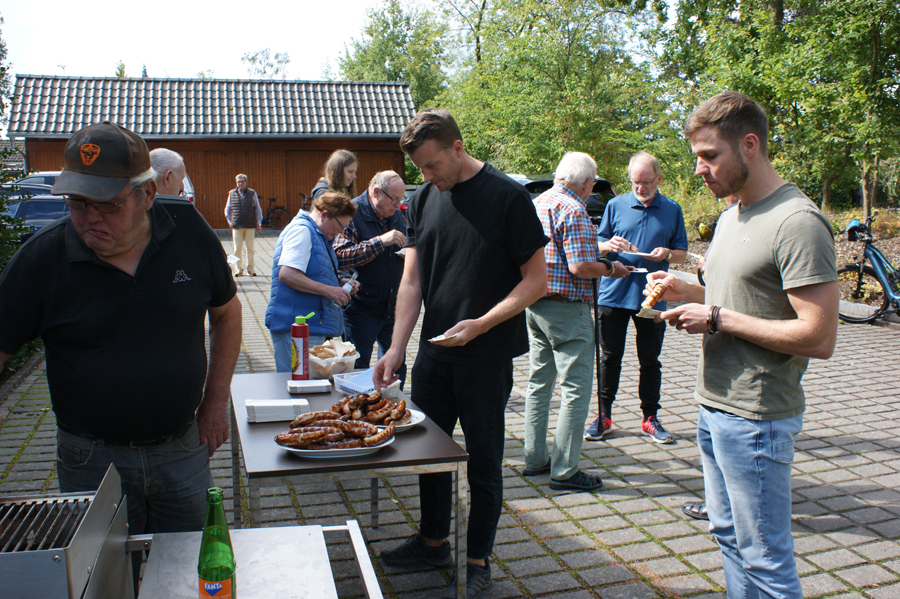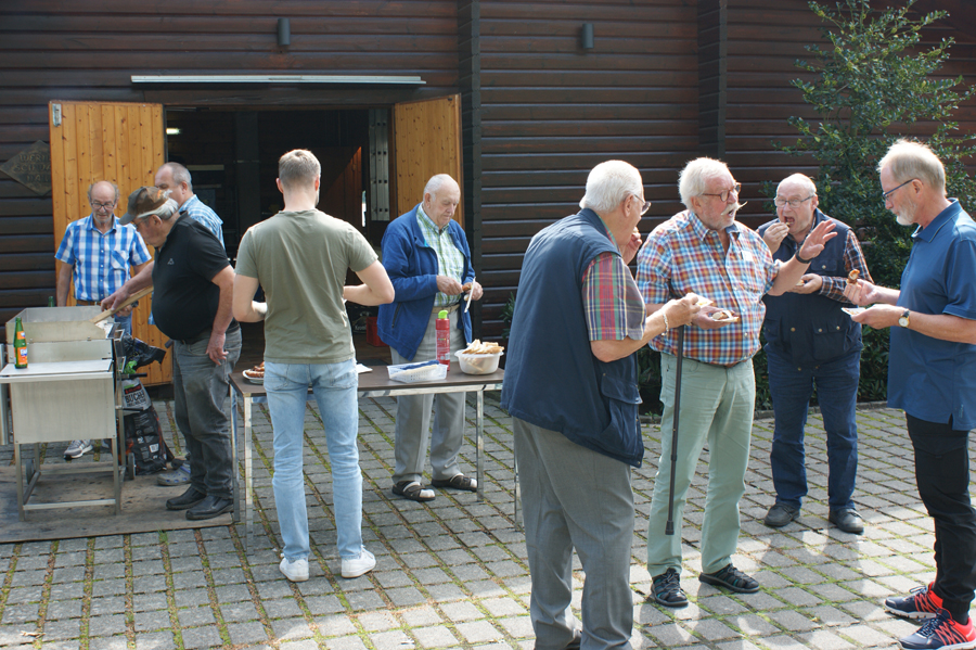 Zum Abschluss sorgten Dirk, Theo und Heiner für das leibliche Wohl. Der Grillduft lockte alle nach draußen. Mit gekühlten Getränken versorgt, wurde über die vorgebrachten Themen diskutiert.