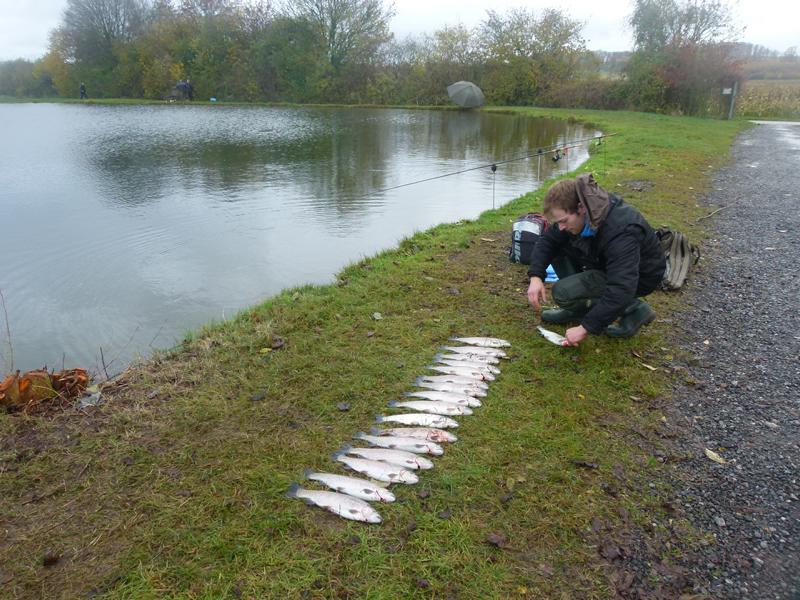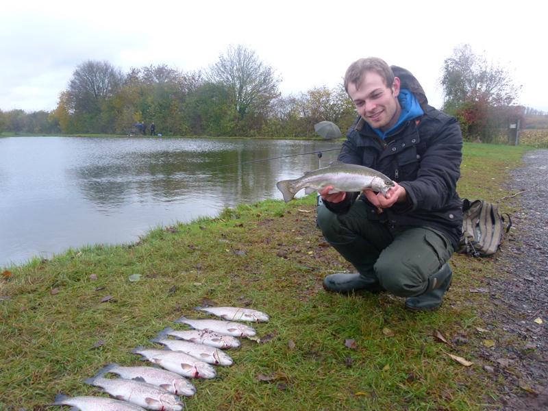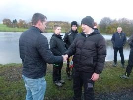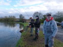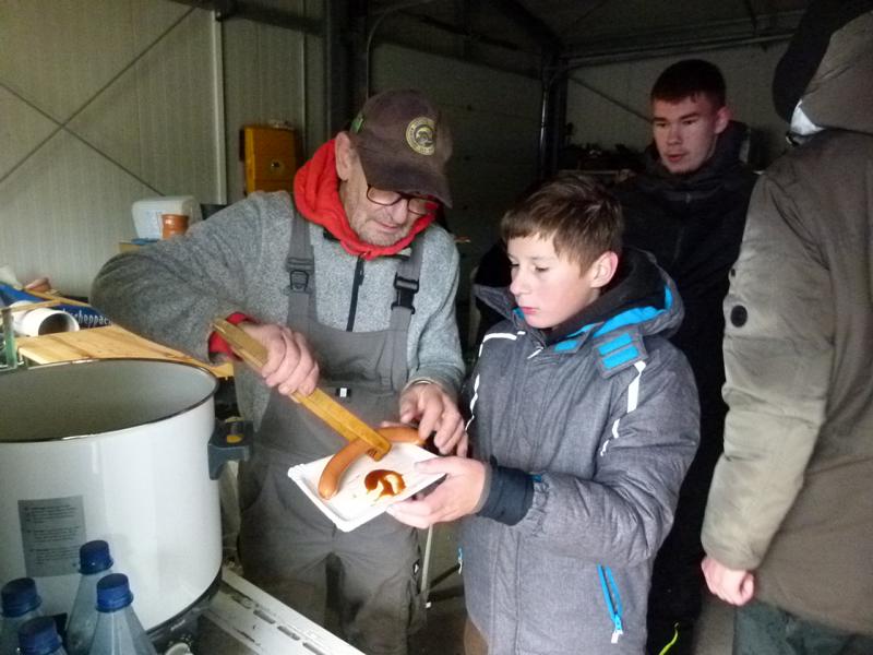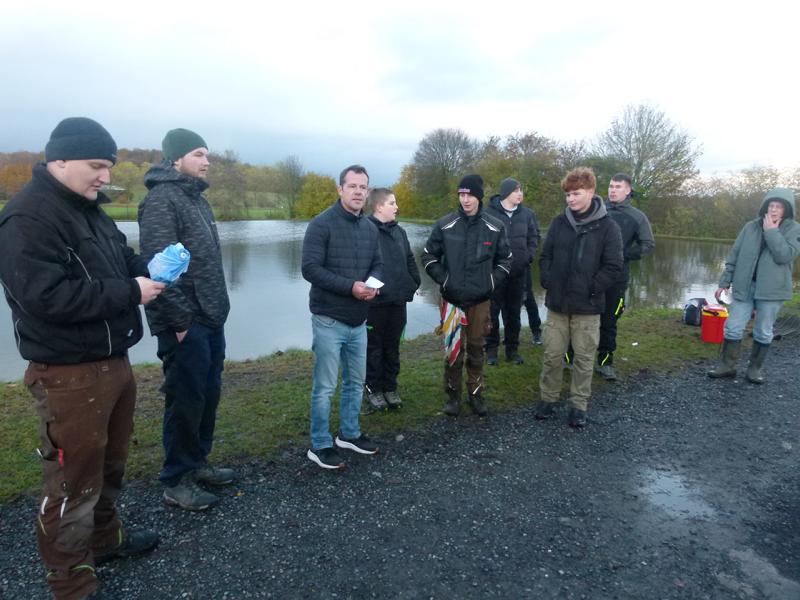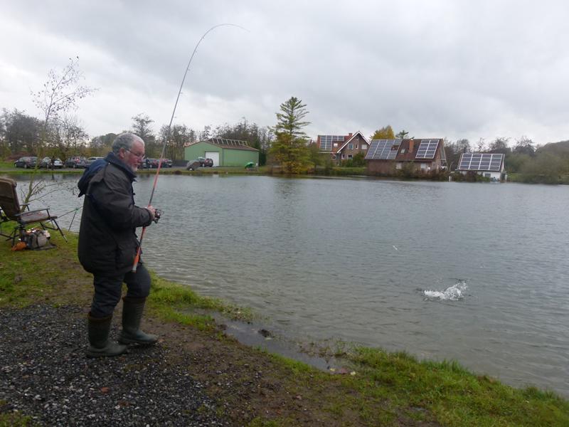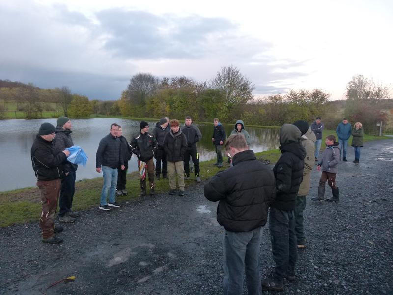 Im Vorfeld hatte Alex, über unsere WhatsApp Gruppe, alle wichtigen Details geklärt. So stand einem tollen Angeltag nichts mehr im Wege. Heiner hatte sich schon am Vortag um den Besatz gekümmert. Nochmal vielen Dank dafür! 30 Kilo Forellen pro Teichanlage und davon hatten wir gleich zwei gemietet. Um Unstimmigkeiten zu vermeiden, entschied das Los, wer an welchem See angeln durfte. Am Wasser selbst, hieß es freie Stellenwahl. Wer mit seinem Los nicht zufrieden war, hatte die Möglichkeit zu tauschen. Denn für alle, sollte der Spaß im Vordergrund stehen. Und das stand er auch. Die Forellen waren an diesem Morgen in Beißlaune. Natürlich gab es auch Phasen, in denen die Fische nicht so recht wollten. Was aber nicht untypisch ist an einem Forellensee und uns genügend Zeit für ein Frühstück und im späteren Verlauf für Heiners Heißwürstchen gab. So konnten die kalten Hände wenigstens für ein paar Minuten aufgewärmt werden. Was auch bitter nötig war. Zumindest für mich. Gut, dass Jens uns vor dem Angeln an warme Kleidung und einen Schirm erinnert hatte. Wer will schon bei niedrigen Temperaturen im Wind bzw. im Regen stehen und frieren? Vielleicht war auch das ein Grund dafür, dass nach dem Mittag immer mehr Bewegung in die Jugend kam. Wenn man so will, haben sich die Jungs warm geangelt. Es ging von Stelle zu Stelle, überall ein paar Wurf, dann ging es weiter. Immer in Bewegung. Die Taktik schien aufzugehen, beim Schleppen wurden noch einige schöne Forellen überlistet. Kurz zusammengefasst: Es war ein herrlicher Angeltag, Roman hatte mit Abstand die meisten Fische, Mattes bekam ein Gutschein für die größte Lachsforelle und Erich hatte sich in den Finger geschnitten. Gute Besserung an dieser Stelle! Was uns am Meisten gefreut hat, war die Hilfsbereitschaft untereinander und das alle gefangen haben. Unser Forellenangeln war ein würdiger Abschluss für unser Angeljahr 2024.