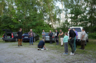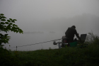 Während sich der Nebel allmählich verzog und Dirk bereits leidenschaftlich den Kohlegrill anfeuerte, umrundete Heiner den See mit dem Wiegenetz.