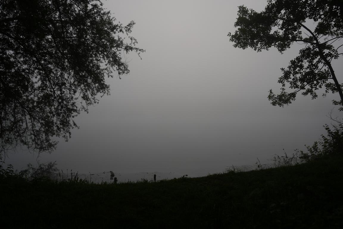 Dicke Nebelschwaden zogen im Morgengrauen auf, verschluckten das Licht der tiefstehenden Sonne und hüllten die Landschaft in eine beinahe gespenstische Stille. Vom Gröblinger See war nicht mehr viel zu erkennen.