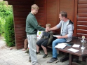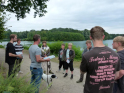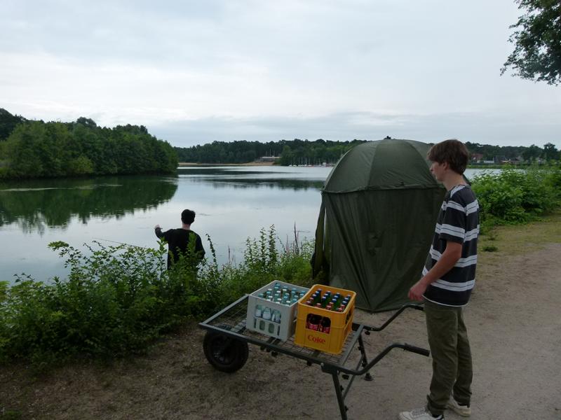 So konnten wir nur nach bestem Wissen und Gewissen die Angelplätze ausstecken. Bei unserer offiziellen Begrüßung erklärte ich den Junganglern die Situation und worauf sie achten sollten, wenn sie mehr als nur ein paar Weißfische fangen wollten. Für unser Angeln selbst gab es einige Zugeständnisse für die Jugend. So durften sie mit zwei Ruten angeln, sie durften dem Raubfisch nachstellen und es war für sie erlaubt in dieser Nacht ein Zelt zu nutzen. Was auch nötig war, denn kurz nachdem es ans Wasser ging, fing es richtig an zu schütten. Nur gut, dass der Regen nicht lange anhielt. Doch trotz des trockenen Wetters, gab es gleich zwei, die so richtig nass wurden. Einmal Roman, einer unser Betreuer, der freiwillig ins Wasser ging, um einen abgestürzten Ballon zu retten. Ich hatte ihm gesagt, dass da bestimmt 50 Euro dranhängen. Was sich als falsch herausstellte. Es war nur eine Karte auf der „Schön, dass du da bist!" stand. Und dann landete einer der jüngeren Teilnehmer völlig unfreiwillig im See. Manchmal zahlt es sich tatsächlich aus, wenn Eltern mitdenken und Wechselklamotten einpacken.