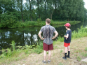 Da viele Stellen, die wir sonst beim Schnupperangeln nutzen, mittlerweile komplett vom Kraut eingenommen sind haben wir uns kurzerhand entschieden, an die Staumauer zu gehen. Wir waren uns einig, wenn irgendwo bei dieser Hitze Fische sind, dann in der Strömung. Also gab es vor dem Fischen einen kleinen Spaziergang. Obwohl die Fische nicht wirklich in Beißlaune waren, konnten doch einige gefangen werden. Selbst die Betreuer haben mitgeangelt und waren erfolgreich. Aber mit Abstand, die meisten, nämlich 13 Fische, gab es für den Jüngsten unter uns. Darunter Gründlinge, Barsche und Ukeleien. Wie schnell doch die Zeit vergeht, wenn ab und zu etwas beißt. Als kleine Abkühlung gab es sogar noch ein Eis für alle. An dieser Stelle nochmal vielen Dank an Karl!