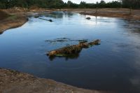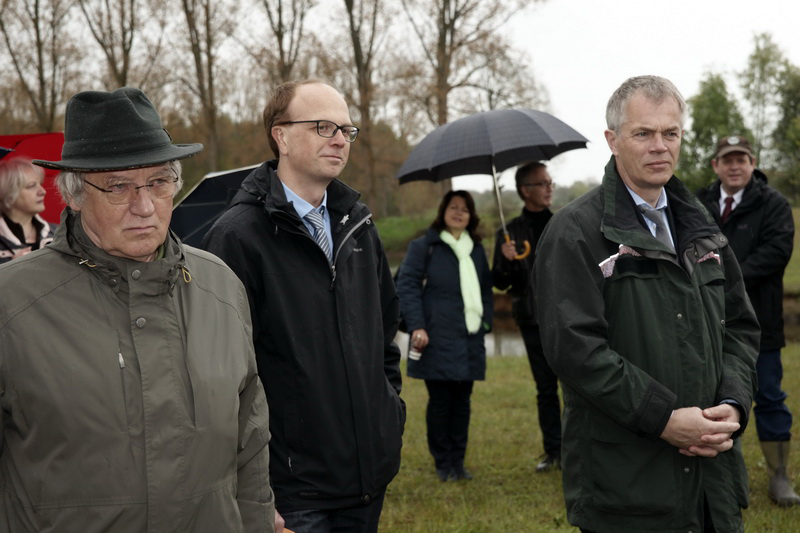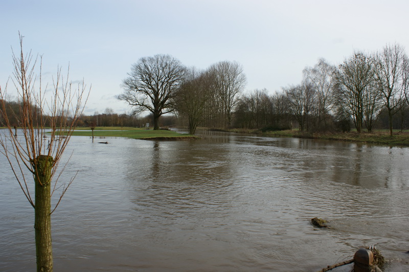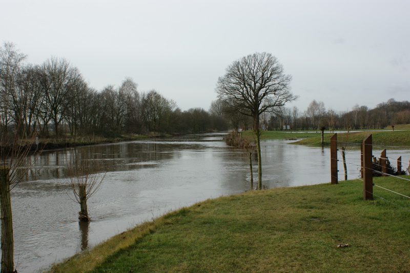 In der Nacht vor unserem Pressetermin gab es im oberen Einzugsgebiet der Ems starke Gewitter, mit Niederschlägen zwischen 30 und 60 mm pro m². Der Baggerfahrer stellte bei Arbeitsbeginn fest, dass der Wasserstand über Nacht erheblich angestiegen war.