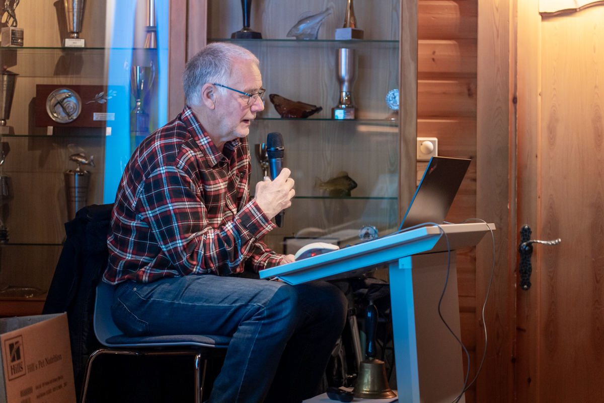 Gewässerwart Mathis Korn stellte in einer Präsentation die Arbeiten der Gewässerdienste vor und lobte die hervorragende Beteiligung sowie das große Engagement der Helfer. Gleichzeitig wies er darauf hin, dass die Beteiligung inzwischen teilweise das tatsächliche Arbeitsaufkommen übersteige, und stellte geplante Projekte für 2026 vor.