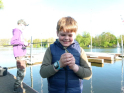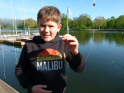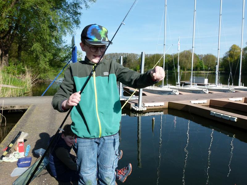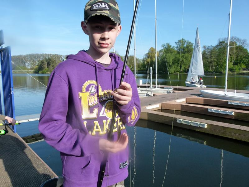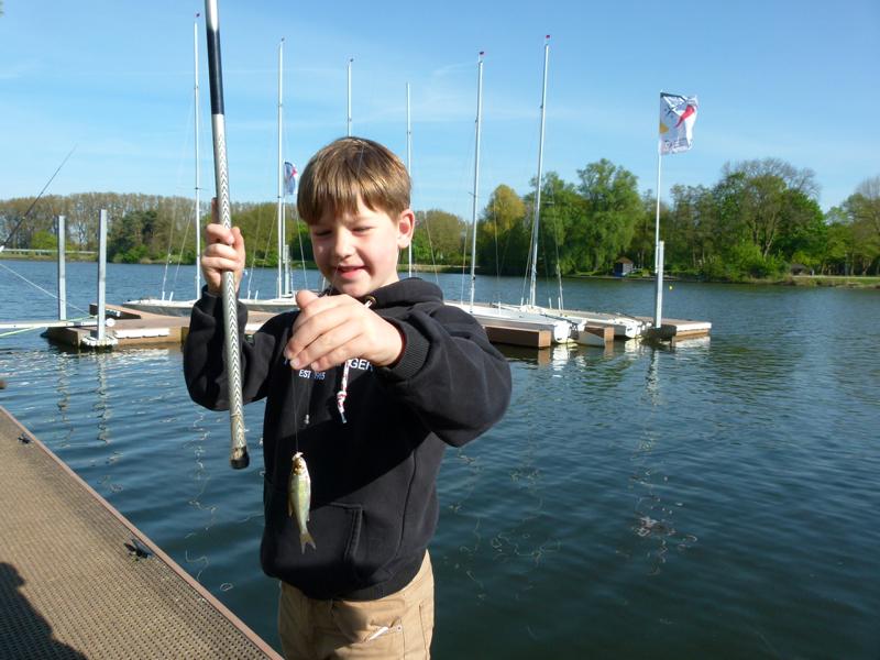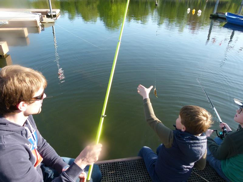 Der Treffpunkt war, wie immer, am Emssee vor dem Parkplatz am Bootshaus. Um 17 Uhr durften wir dreizehn Jugendliche bei herrlichem Wetter begrüßen. Da ein paar neue Gesichter dabei waren, erklärte ich den Ablauf, bevor es an die Angelstellen ging. Die meisten gehen immer direkt auf den langen Steg vor dem Bootshaus. Hier kann man bequem stehen oder sitzen, bekommt keine dreckigen Füße und die Fische halten sich anscheinend gerne zwischen den Stegen im Wasser auf. Wer hier allerdings abrutscht, wird wohl nicht nur nasse Füße bekommen. Die ersten Fische kamen allerdings von einer Uferstelle. Es handelte sich um kleine Rotaugen. Später kamen noch kleine Barsche und Ukeleien dazu. Die Fische waren anscheinend in Beißlaune. So konnte jeder seine Fische fangen. Endlich mal wieder! Und wir haben die Hoffnung, dass wir beim nächsten Mal noch ein paar mehr und dann vielleicht auch etwas größere Fische fangen werden. Wer seine Augen offen hatte, konnte eine Schildkröte beobachten und vereinzelt Karpfen beim Ziehen unter der Oberfläche sehen. Ganz zu schweigen, von den jungen Entenküken. Wirklich niedlich! Am Wasser gibt es halt immer etwas Spannendes zu sehen. Nach guten zwei Stunden war das zweite Schnupperangeln vorbei und es kehrte wieder Ruhe am See ein. Wir freuen uns auf das dritte Schnupperangeln am siebten Juni.